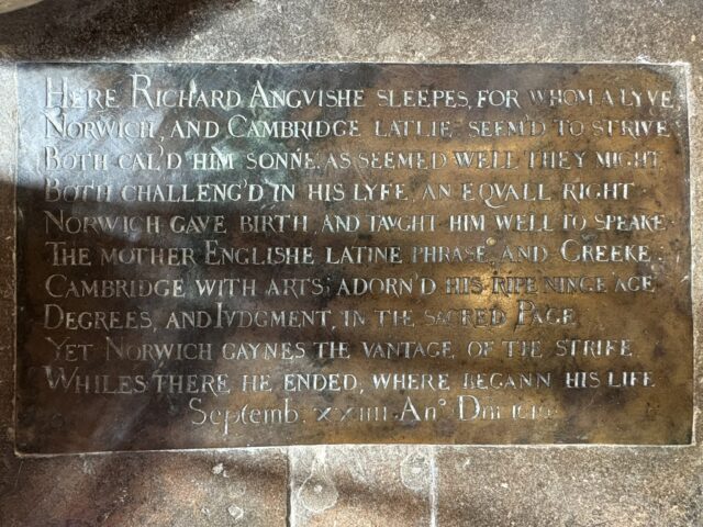 Anguishe, Richard Church: St. Peter Mancroft - Norwich (in Norwich, Norfolk).Sex: Male.Virtue(s): Judgement, Learning/knowledge*.Literature: Poetry*.Language: Only English.Year of death: 1616.Age at death: not given (classed as: Adult).Looks like JavaScript is disabled; enable to get an interactive map of UK grave monuments.