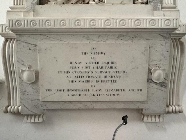 Archer, Henry Church: St. Mary's - Hale (in Hale, Hampshire).Profession: Member of Parliament.Sex: Male.Virtue(s): Affection, Charity*, Good spouse, Justice, Piety, Public service/spirit*, Steadiness*.Language: Only English.Year of death: 1768.Age at death: 68 (classed as: Adult).Looks like JavaScript is disabled; enable to get an interactive map of UK grave monuments.