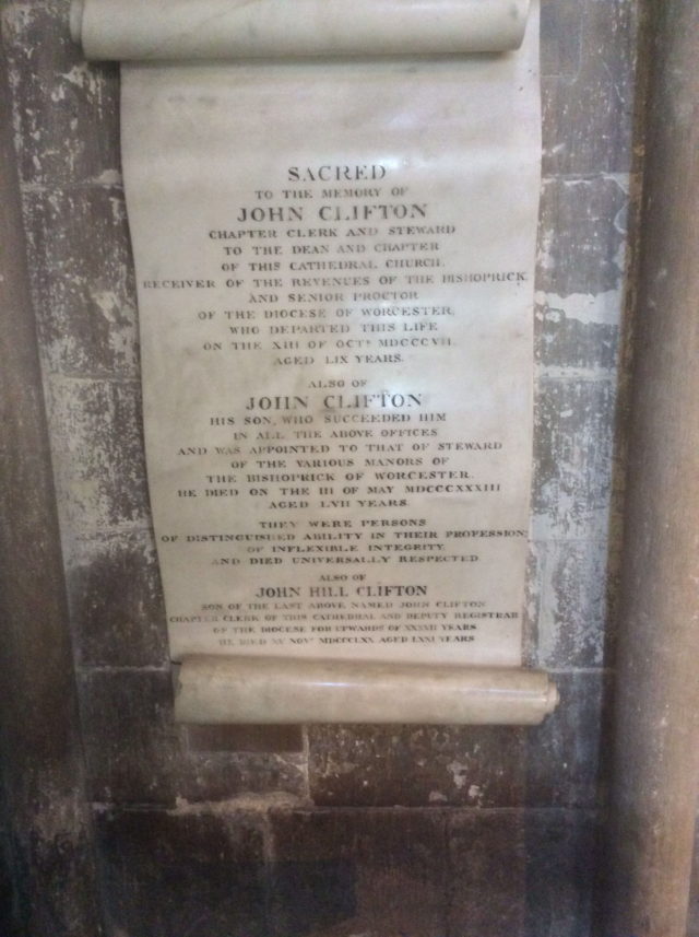 Church: Worcester Cathedral (in Worcester, Worcestershire).