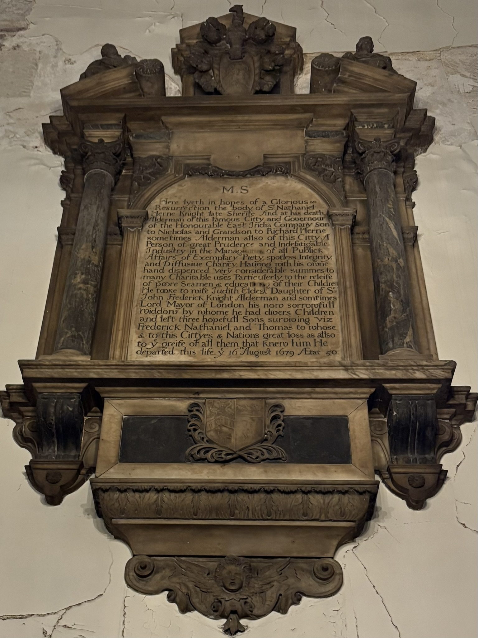 Herne, Nathaniel Church: St. Margaret - Lothbury (in City of London, London).Title: Sir.Relation: Child, Child-in-law, Grandchild, Parent, Spouse.Profession: Alderman*, Magistrate*, Merchant/businessman.Sex: Male.Virtue(s): Almsgiving*, Blamelessness*, Charity*, Industry*, Integrity, Piety, Prudence.Afterlife: Looked for*, Resurrection of the body.Language: Only English.Year of death: 1679.Age at death: 50 (classed as: Adult).Looks like JavaScript is disabled; enable to get an interactive map of UK grave monuments.