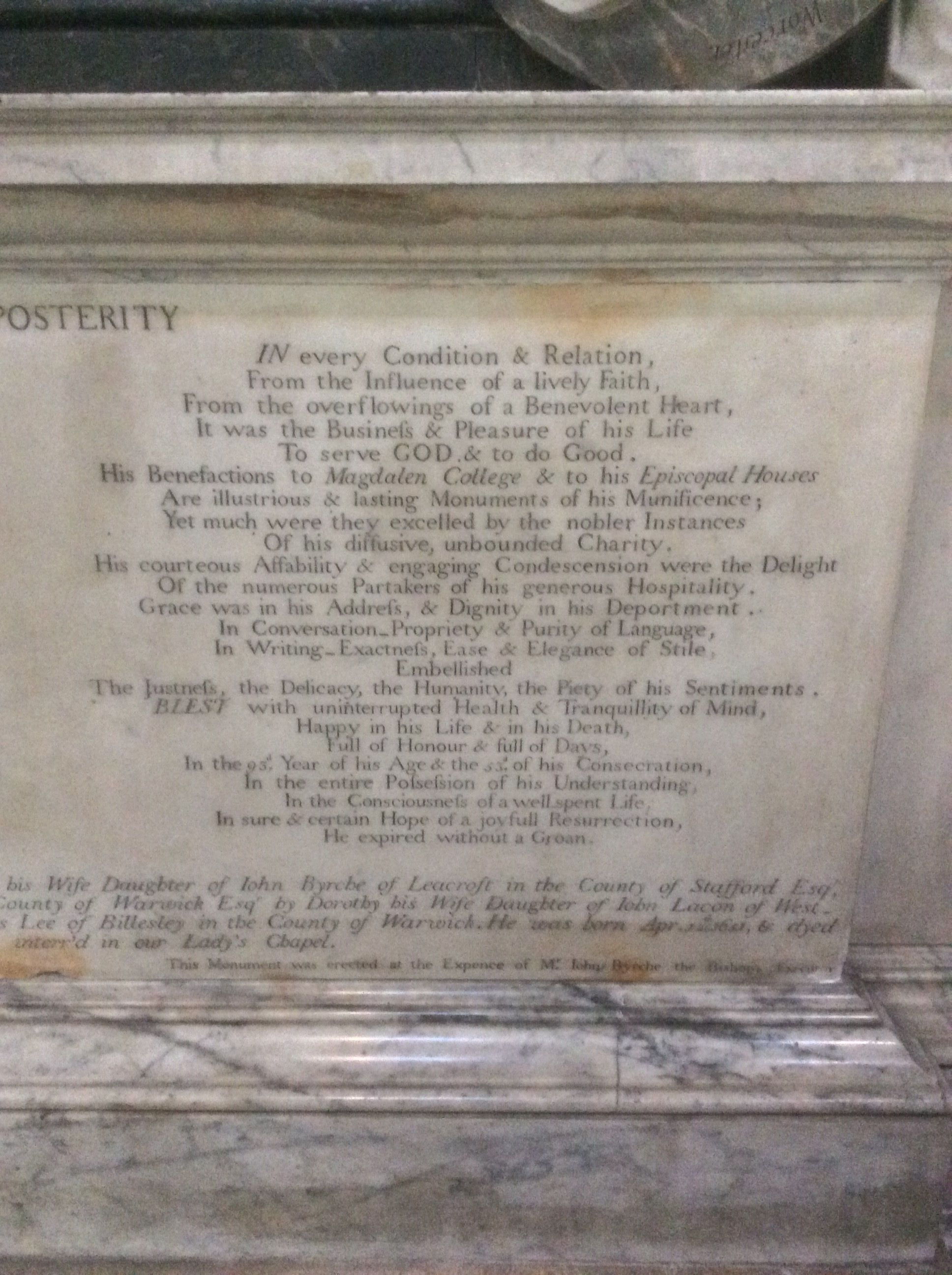 Ability*, Affability, Affection, Benevolence*, Charity*, Condescension*, Constitutional patriotism*, Courtesy, Delicacy*, Dignity*, Distinction*, Ease, Elegance, Esteemed*, Exactness*, Faith*, Fidelity*, Firmness, Generosity*, Gracefulness, Honoured*, Hospitality, Humanity*, Impartiality*, Integrity, Intelligence*, Justice, Learning/knowledge*, Liveliness*, Love of/service to church, Munificence, Orthodoxy*, Piety, Prudence, Public service/spirit*, Purity of manners, Service of God*.