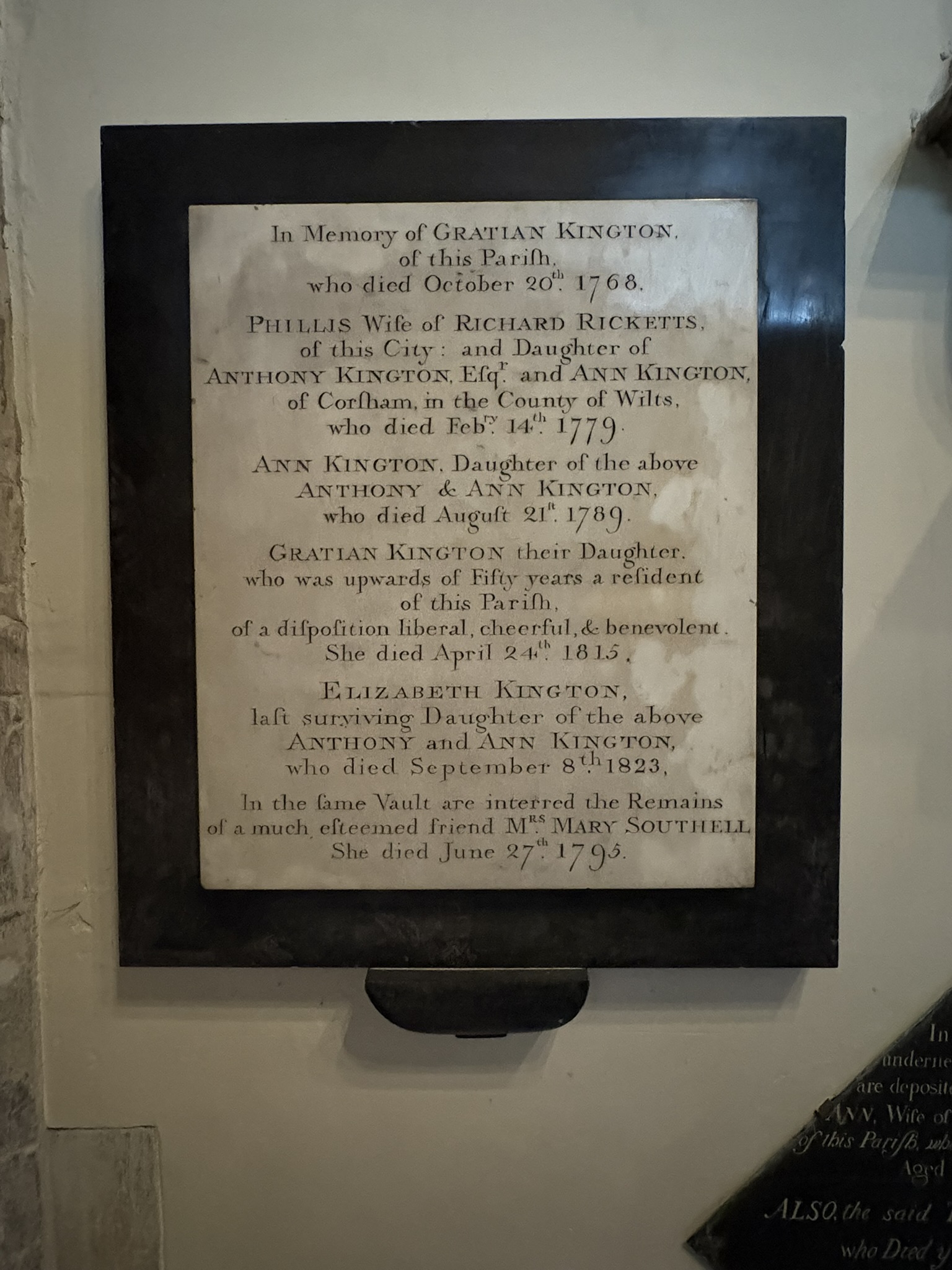 Kington, Gratian Church: St. Mary Redcliffe - Bristol (in Bristol, Somerset).Relation: Child, Grandchild, Sibling.Sex: Female.Virtue(s): Benevolence*, Cheerfulness*, Liberality.Language: Only English.Year of death: 1815.Year of headstone: 1823.Age at death: not given (classed as: Adult).Looks like JavaScript is disabled; enable to get an interactive map of UK grave monuments.