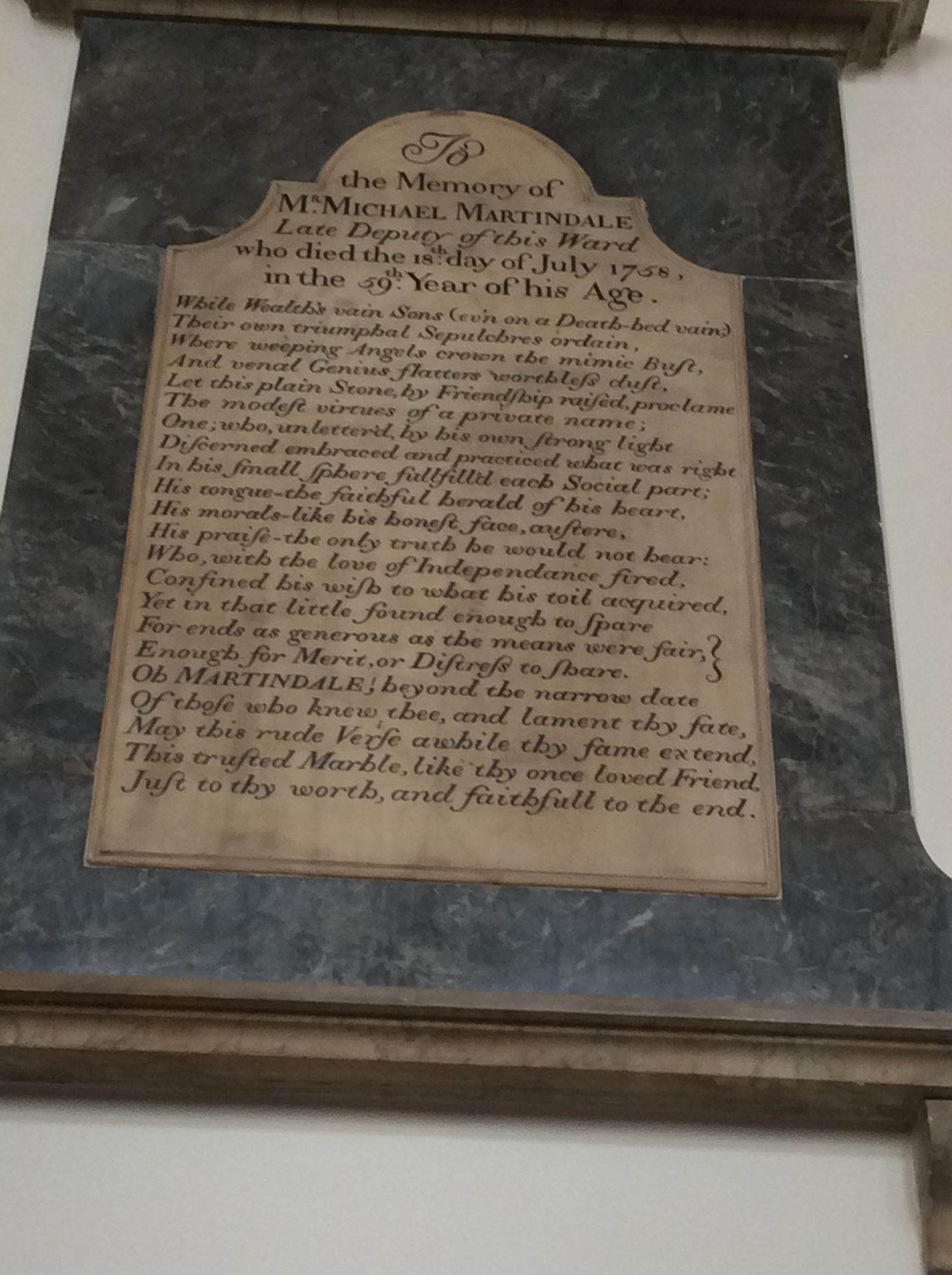 Church: St. Vedast-alias-Foster (in City of London, London).
