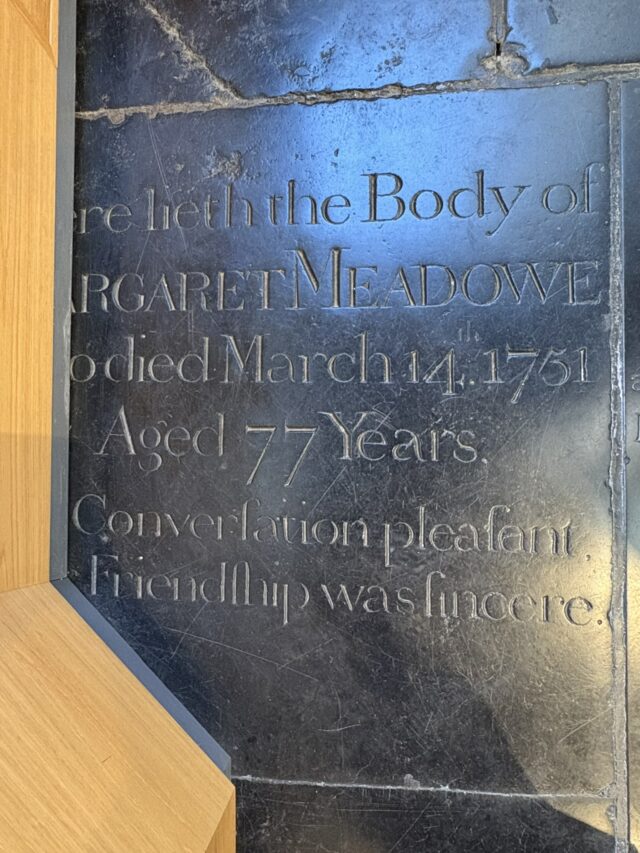 Meadowe, Margaret Church: St. Peter Mancroft - Norwich (in Norwich, Norfolk).Sex: Female.Virtue(s): Good friend, Pleasantness*, Sincerity.Language: Only English.Year of death: 1751.Age at death: 77 (classed as: Adult).Looks like JavaScript is disabled; enable to get an interactive map of UK grave monuments.
