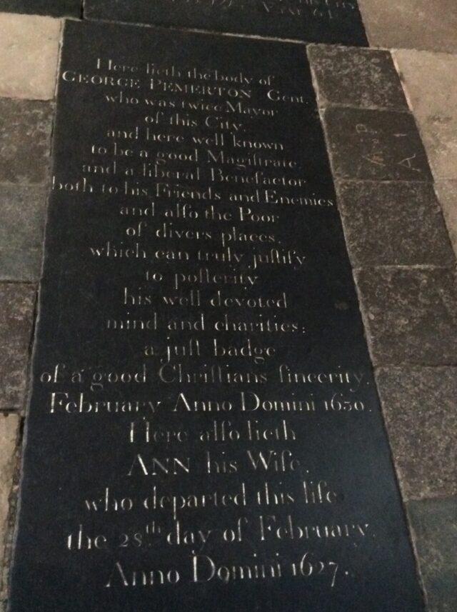 Pemerton, George Church: Winchester Cathedral (in Winchester, Hampshire).Profession: Mayor.Sex: Male.Virtue(s): Charity*, Christianity/religion, Devoutness*, Good to the poor, Liberality, Sincerity.Language: Only English.Year of death: 1630.Age at death: not given (classed as: Adult).Looks like JavaScript is disabled; enable to get an interactive map of UK grave monuments.