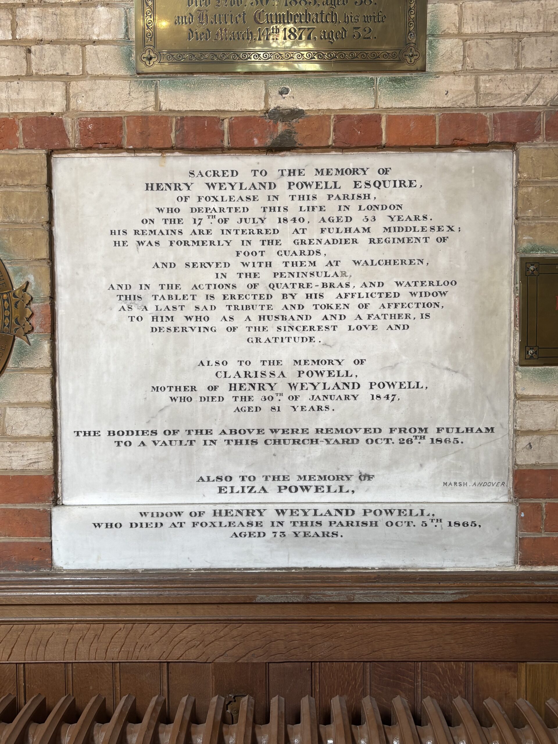 Powell, Henry Church: St. Michael and All Angels' - Lyndhurst (in Lyndhurst, Hampshire).Profession: Soldier*.Sex: Male.Virtue(s): Good parent, Good spouse.Language: Only English.Year of death: 1840.Age at death: 53 (classed as: Adult).Looks like JavaScript is disabled; enable to get an interactive map of UK grave monuments.