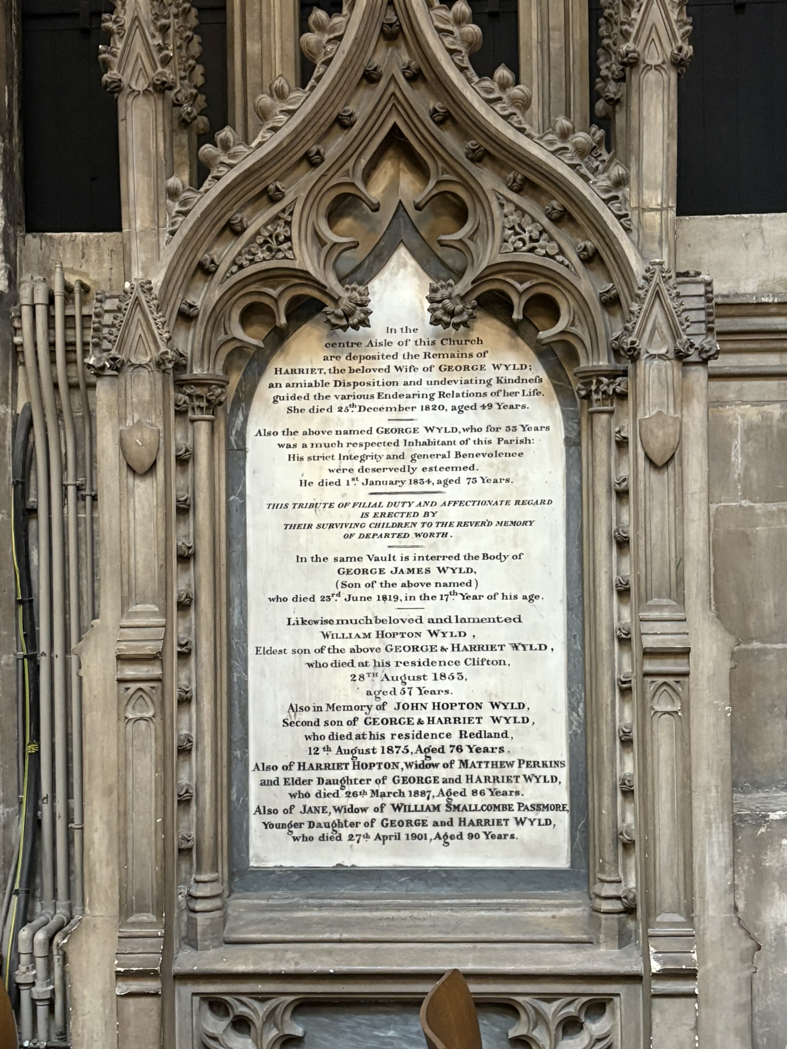 Wyld, George Church: St. Mary Redcliffe - Bristol (in Bristol, Somerset).Sex: Male.Virtue(s): Benevolence*, Esteemed*, Integrity, Respected*, Strictness.Language: Only English.Year of death: 1834.Age at death: 73 (classed as: Adult).Looks like JavaScript is disabled; enable to get an interactive map of UK grave monuments.